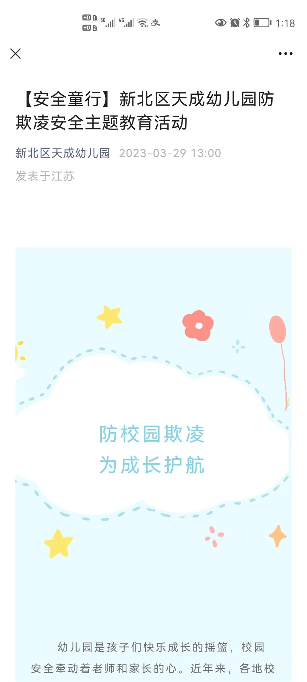 防欺凌安全教育我园安排了国旗下讲话,电子显示屏宣传,防欺凌情景剧,公众号宣传,小班组安全教育